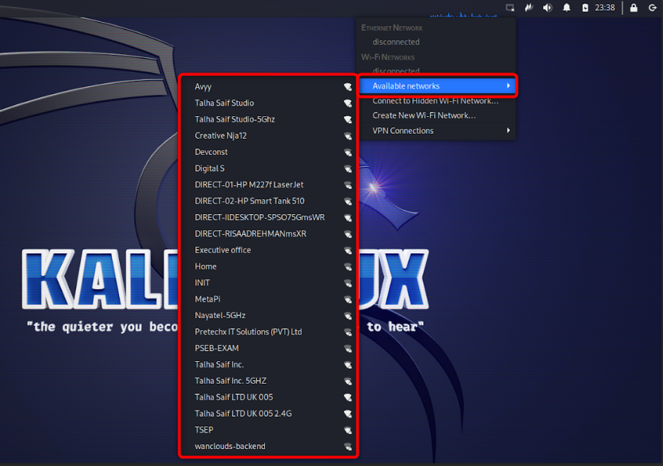 Once done, Kali Linux will be successfully connected to a Wi-Fi network and it will fix the connection issue.