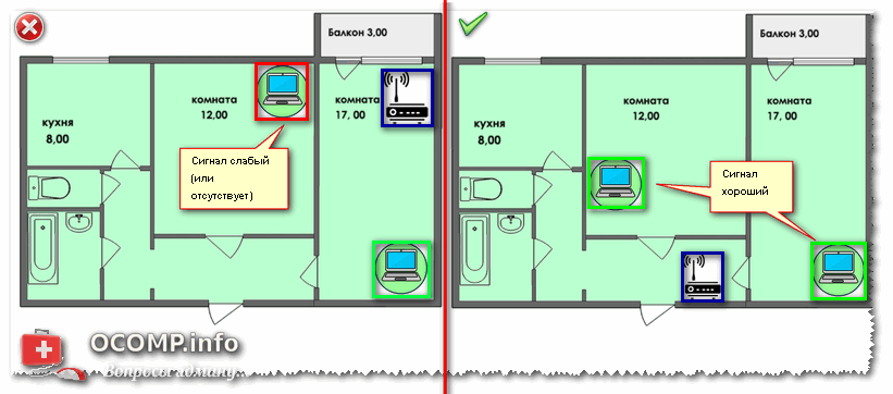 Дальность (радиус) работы сети Wi-Fi на частоте 5 GHz несколько ниже, чем у 2,4 GHz. Если роутер и ноутбук (скажем) стоят в разных комнатах, возможно, что сигнал просто не доходит. Что можно посоветовать: