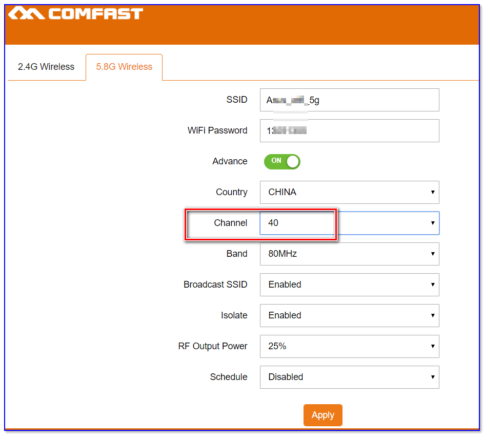 Чтобы вручную сменить канал — необходимо зайти в настройки роутера, открыть раздел беспроводных настроек, выбрать частоту (2,4 или 5 GHz) и указать требуемый канал (это в общем случае). На скринах ниже показано как это делается для роутера TP-Link, Tenda и Comfast.