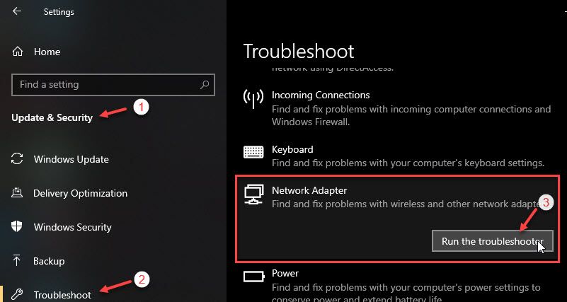Решение 2. Запустите средство устранения неполадок сетевого адаптера