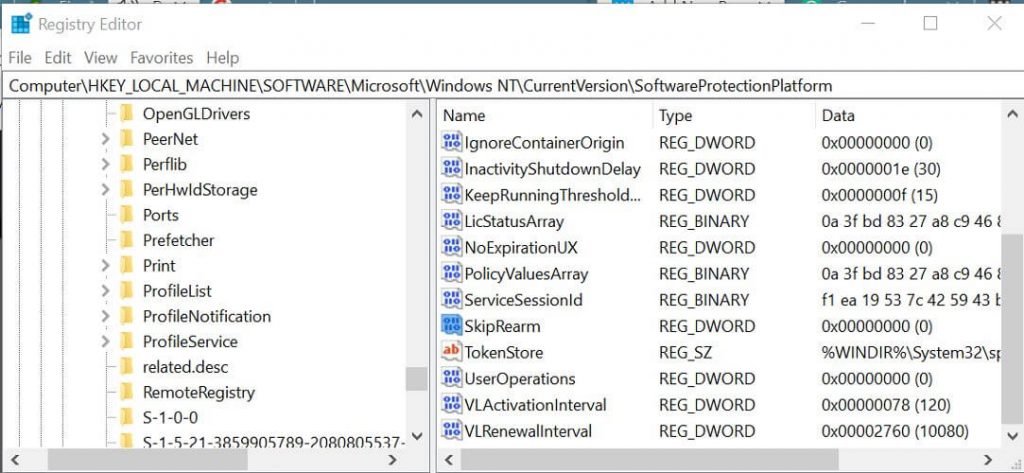 - HKEY_LOCAL_MACHINESOFTWARMicrosoftWindows NTCurrentVersionSoftwareProtectionPlatform: HKEY_LOCAL_MACHINESOFTWAREMicrosoftWindows NTCurrentVersionПрограммное обеспечениеЗащитаПлатформа