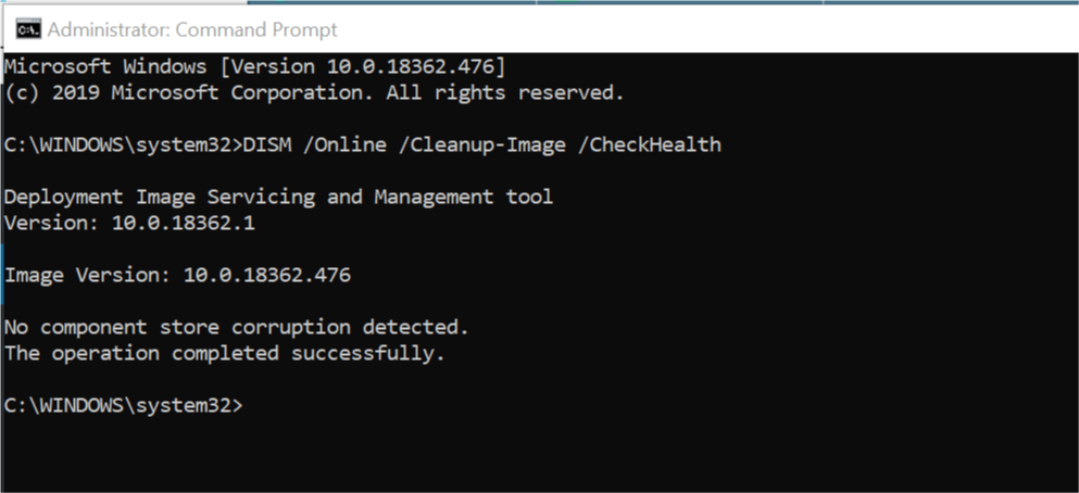 - DISM / Online / Очистка экрана / CheckHealth