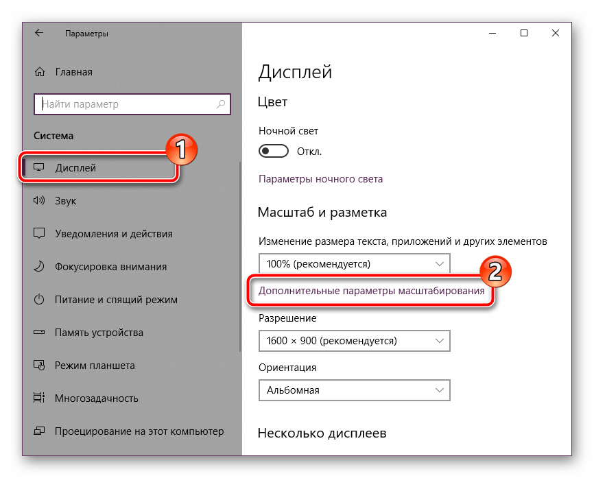 Во вкладке «Дисплей» необходимо открыть меню «Дополнительные параметры масштабирования».