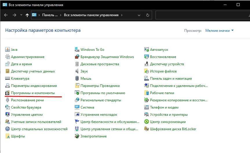 Перейдите в раздел «Программы и компоненты».
