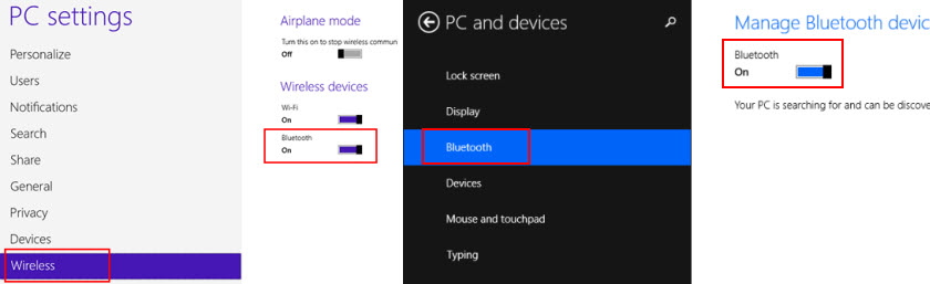 В параметрах Windows 8, в разделе «Wireless» (Беспроводная связь) должен быть переключатель Bluetooth. В Windows 8.1 эти настройки выглядят по-другому.