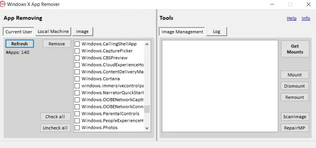 Using the program to remove Windows apps
