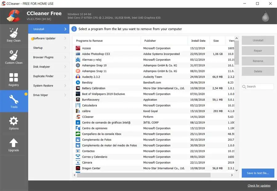 Прежде всего, мы начнем с одного из самых популярных общих решений в этой отрасли, например, популярного Ccleaner . Это программа, которая, хотя иногда и вызывает споры, позволяет нам исключить многие информация и приложения из Windows 10. Мы можем скачать приложение как таковое с ссылку , и говорят, что у нее также есть возможность удалить родное программное обеспечение Windows 10.