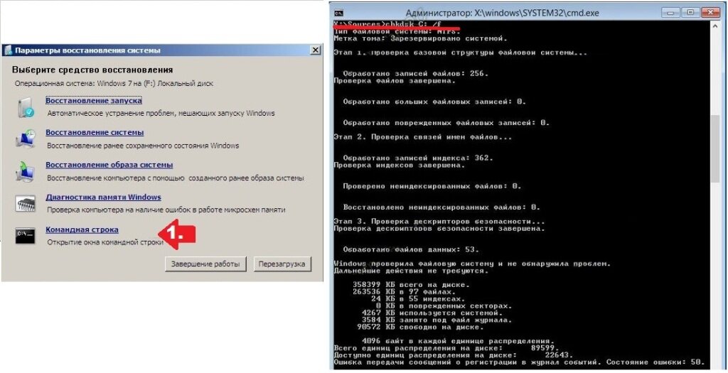 Данный процесс может занять некоторое время, так что запаситесь терпением. На выходе в увидите количество обнаруженных в системе ошибок и из статус исправления. Следующим пунктом обычно выступает восстановление загрузочной записи. Для этого введите команду: