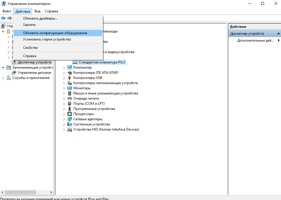 Компьютер заново опросит все устройства и правильно установит клавиатуру.