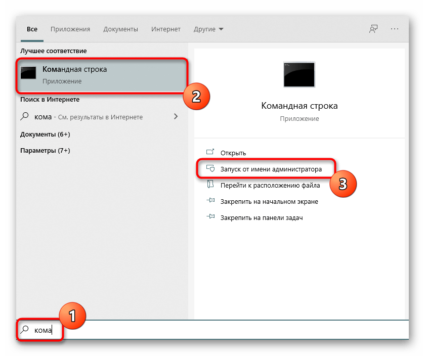 Теперь зарегистрируем скопированный файл. Для этого откройте «Командную строку», лучше с правами администратора, найдя это приложение через «Пуск».