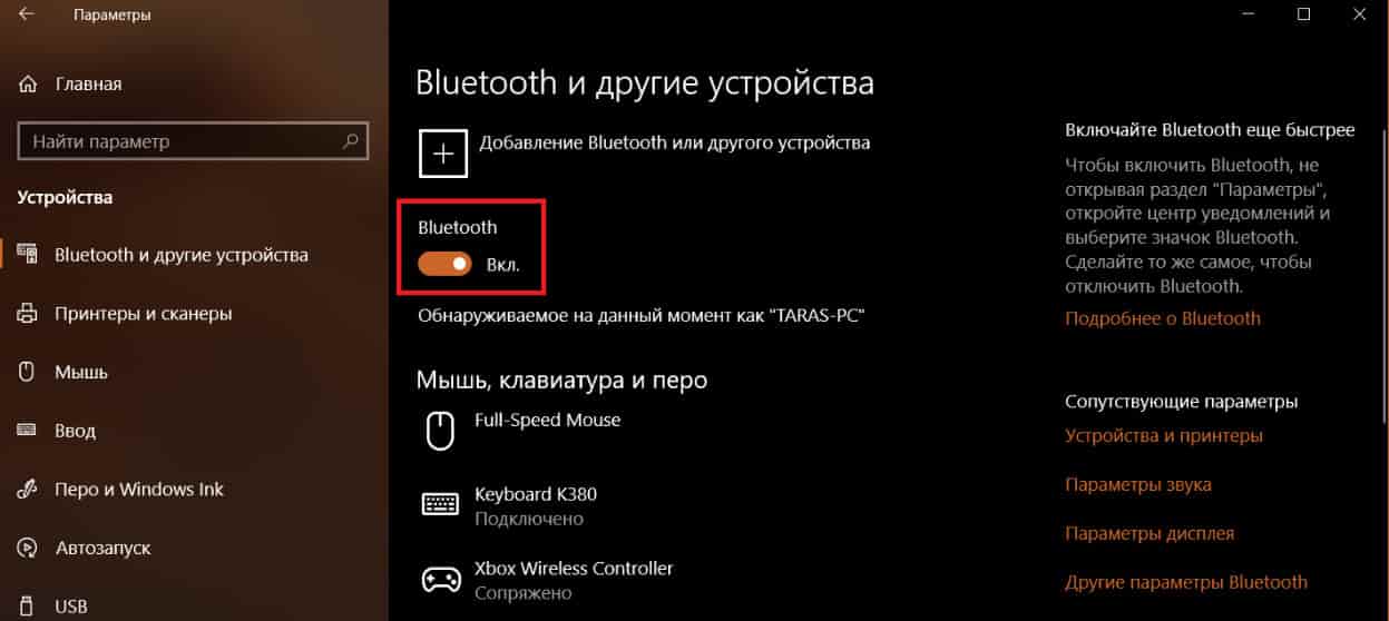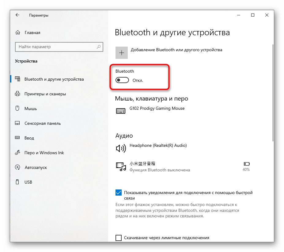 Иногда простая перезагрузка Bluetooth и повторный поиск устройств для подключения сразу же решает все вопросы, связанные с работоспособностью комплектующего. Сделайте это и проверьте, поможет ли такой банальный метод быстро исправить сложившуюся ситуацию.