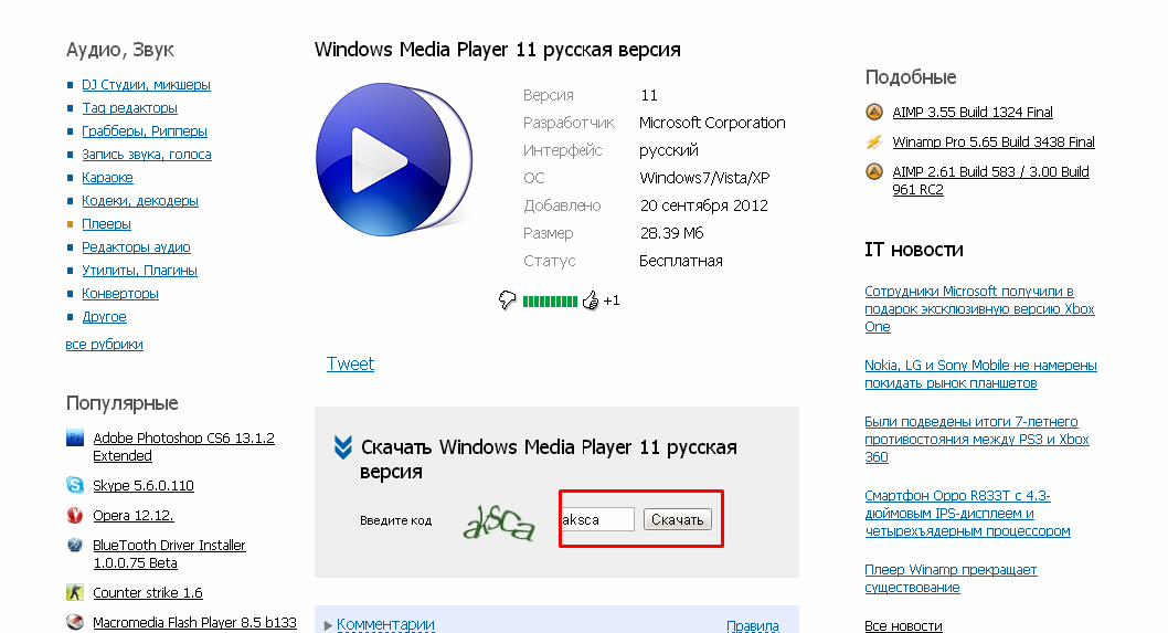 Я открываю первую же ссылку и попадаю на страницу сайта, где можно скачать программу. В специальном поле ввожу код-подтверждения и жму на «Скачать».