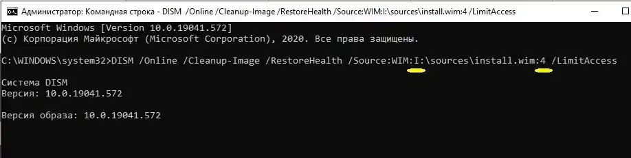 Для файла install.wim: DISM /Online /Cleanup-Image /RestoreHealth /Source:WIM: X :sourcesinstall.wim:IndexNumber /LimitAccess