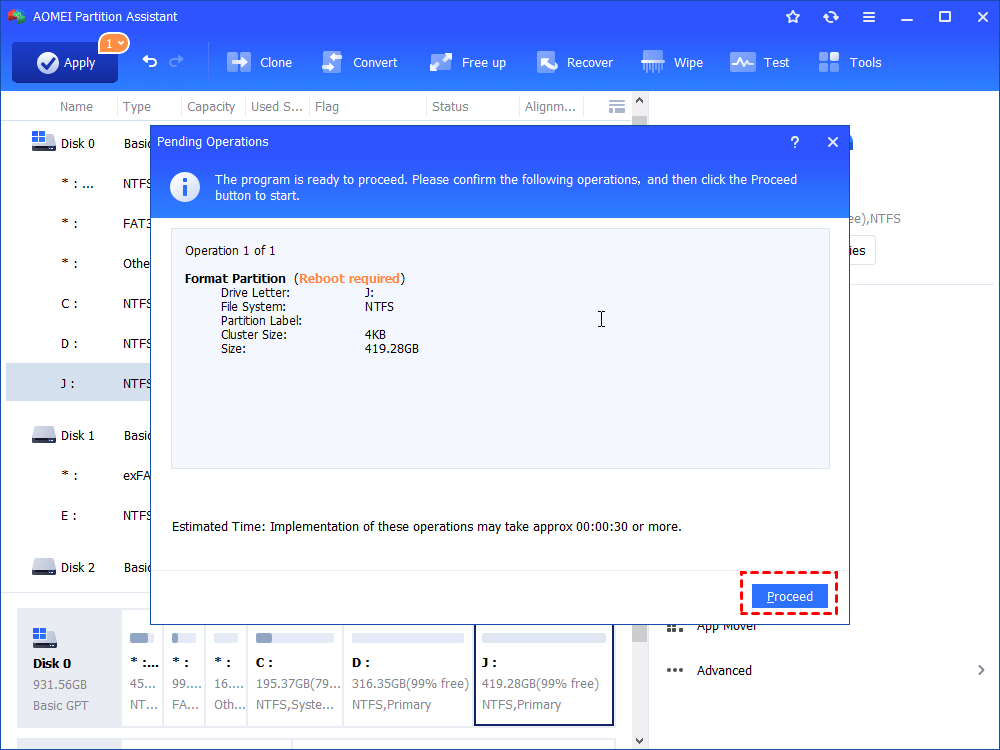 Step 4. Review the pending operation and click Apply and Proceed to perform it.