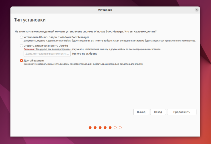 Дальше действуйте как обычно — по инструкции для определенного дистрибутива, и установка Linux второй системой рядом с Windows 10 или 11 будет выполнена успешно.
