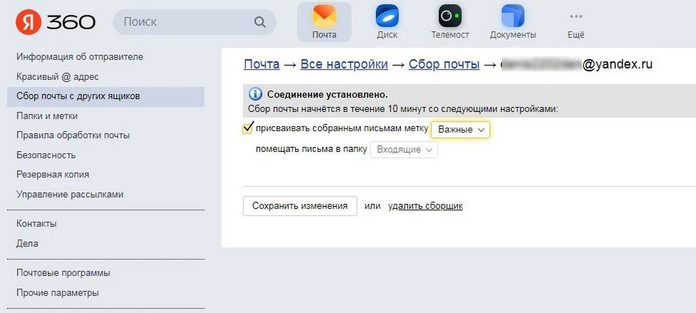 В заключение хочу отметить, что обычно со сбором электронной почты в сервис Яндекс проблем никаких нет и ничего не нужно настраивать во второй почте (которую подключаете). Но есть очень капризный сервис по имени GMail:) Вот при его подключении (причём не только к Яндекс, но к даже к самому себе) очень часто возникают проблемы и связано это с повышенной безопасностью этой гугловской почты. Нет, не спорю, безопасность — это хорошо! Но иногда это достигает уровня маразма, например, когда Gmail блокирует подключение к своему же второму ящику GMail, причём вход в оба выполнен с одного компьютера и одного IP:)) О подобных проблемах именно с подключением почт Google я расскажу в отдельной статье.