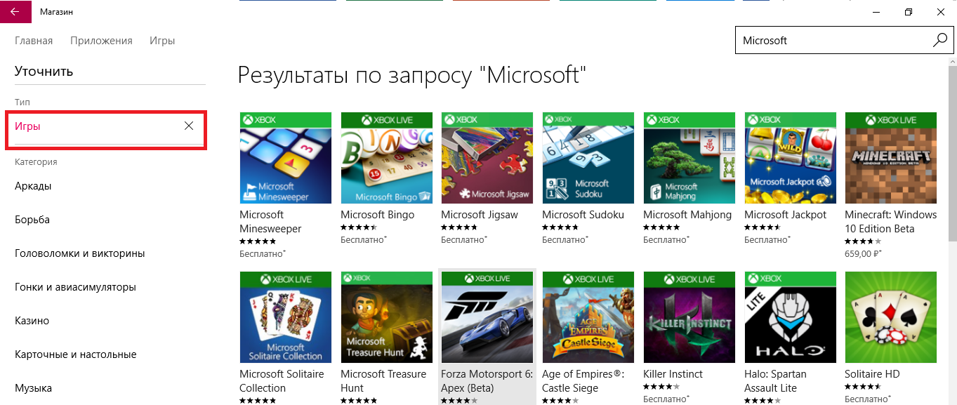 Откройте вкладку игр, чтобы получить список всех разработок компании «Майкрософт».