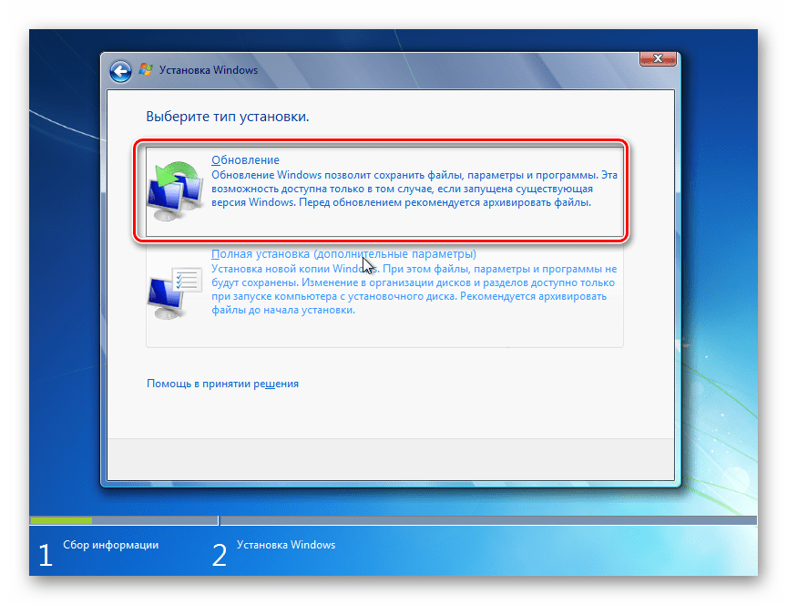 В более сложных ситуациях понадобится полная переустановка Windows с сохранением пользовательских файлов. Способ радикальный и безальтернативный, если восстановление не помогло. Тем не менее он действенный и при правильном выборе варианта переустановки (а это «Обновление») не повлечет за собой удаления других файлов и документов, которые вы храните на компьютере.