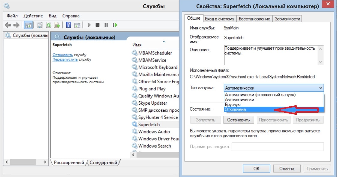 Но можно ли отключить вообще? В интернете есть способы, например отключение службы SuperFetch. Теоритически — похоже что эта служба и отключает работу Система и сжатые файлы.. но насколько я знаю, SuperFetch отвечает за кэширование файла. То есть немного другое. Поэтому.. я на всякий случай напишу как отключать SuperFetch, после отключения ничего страшного не будет, но потребление памяти и правда может уменьшиться. В общем отключить можно так: