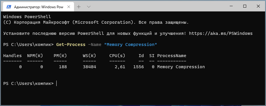 Помимо поля MemoryCompression вы можете увидеть True для включенного или False для отключенного.