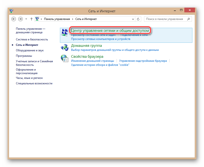 На странице «Сеть и интернет» кликаем ЛКМ по разделу «Центр управления сетями и общим доступом».