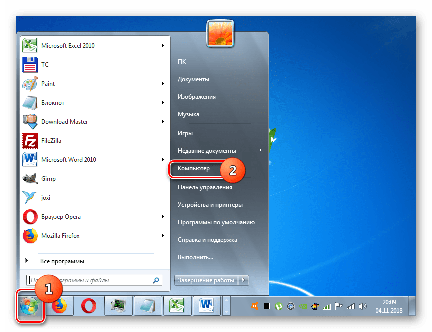 - Щелкните «Пуск» и перейдите по пункту «Компьютер».