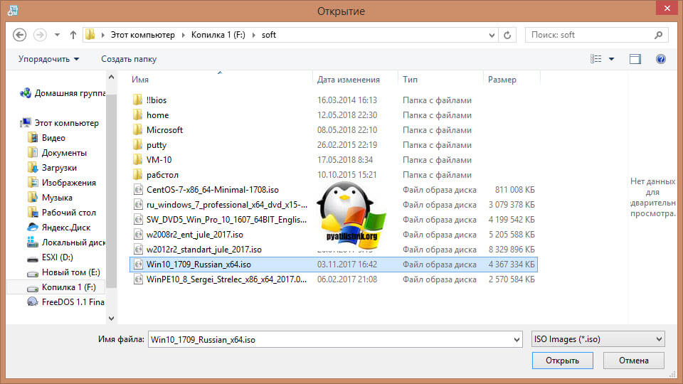 Я перехожу в нужное расположение и указываю нужный мне ISO. Далее нажимаем «открыть».