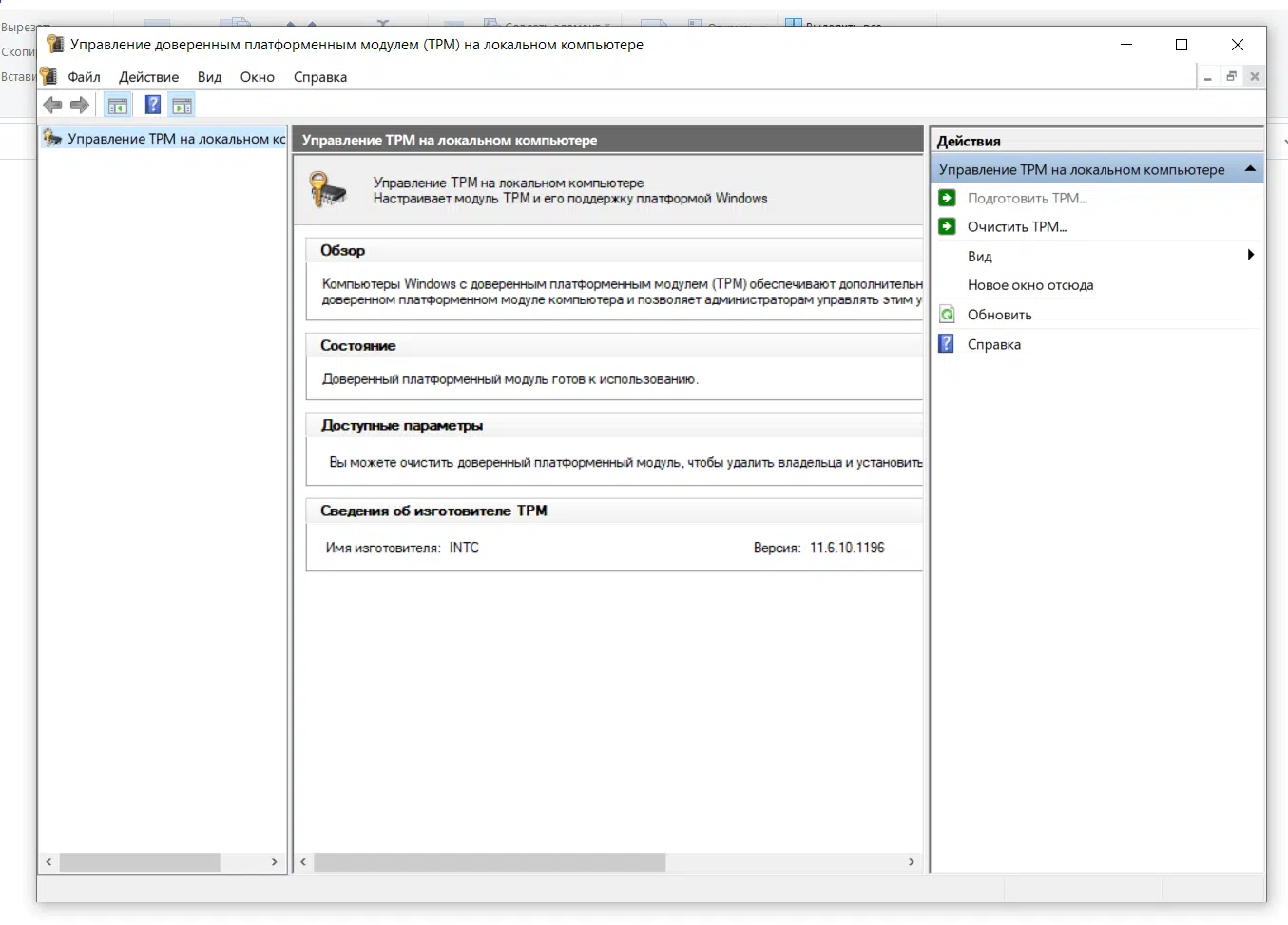 Проверить, есть ли он у вас можно, зажав комбинацию клавиш “Win+R” и введя в появившееся окно команду “tpm.msc”.