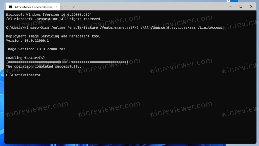 Готово! Это установит .NET framework 3.5 в Windows 11 без использования подключения к Интернету.