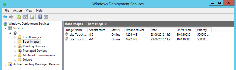Зеленый треугольник на имени WDS сервера означает, что он настроен и запущен.