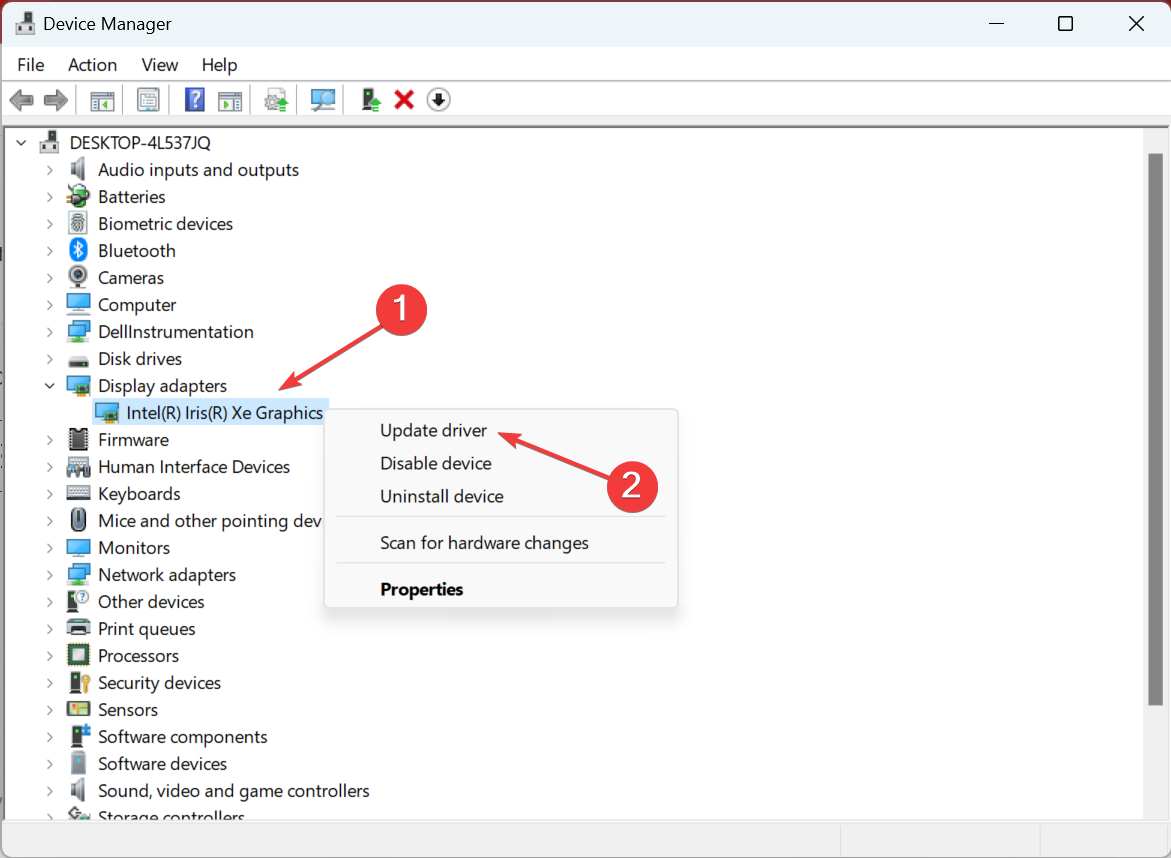 2. Locate the problematic device, right-click on it, and select Update driver.