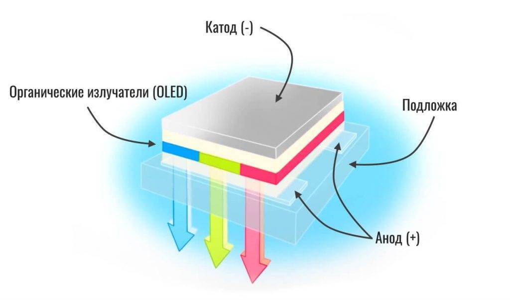 Каждый субпиксель, состоящий из органического вещества, сам излучает свет, когда через него проходит ток. Другими словами, каждая точка на OLED-экране смартфона — это и есть «лампочка», яркость которой можно легко изменять индивидуально.