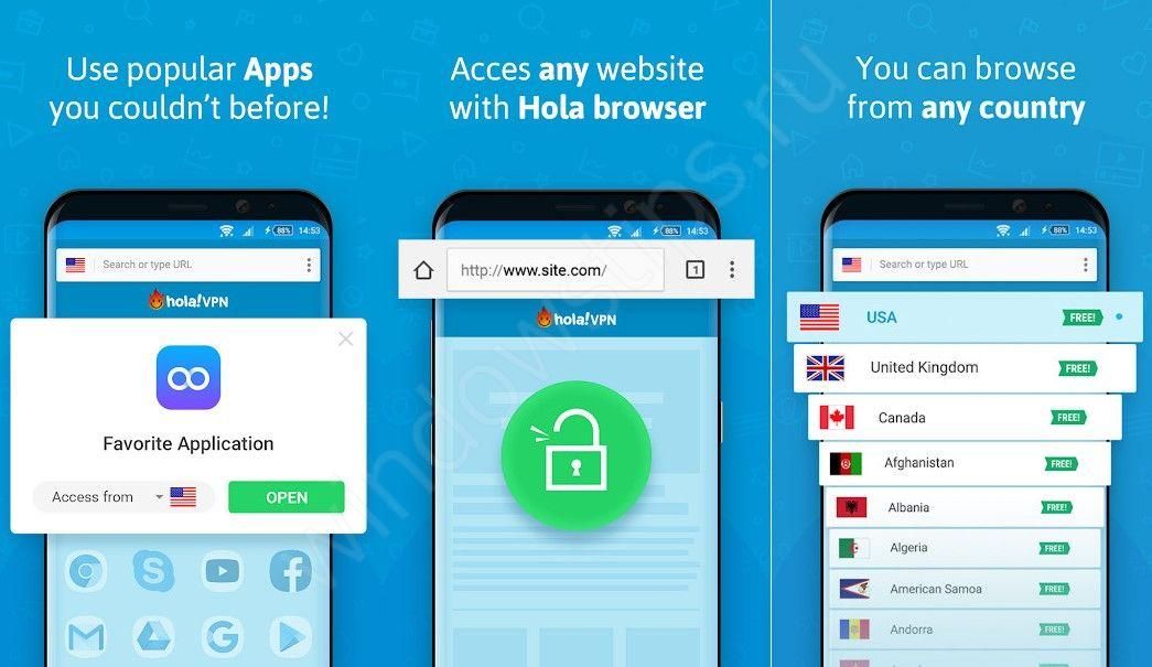 Приложение Hola Free VPN — еще один браузер с ВПН, позволяющий заходить на разные сайты в режиме инкогнито и под разными IP. В бесплатной версии там доступно 200 локаций, что позволяет подобрать вариант с учетом географического расположения.