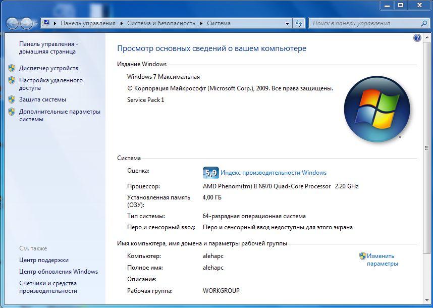 Версия Windows 7 Домашняя Расширенная (Home Premium)