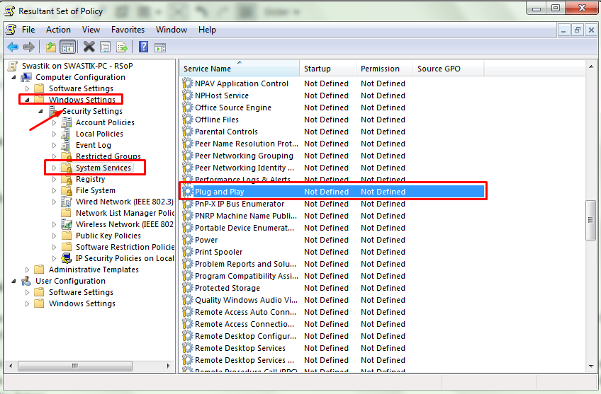 Шаг 3. Теперь перейдите в Параметры Windows> Параметры безопасности> Системные службы. Теперь ищите Подключи и играй сервисов.