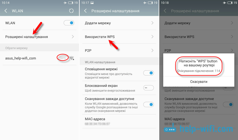 - На Android может потребоваться зайти в настройки Wi-Fi — Дополнительные функции — WPS по кнопке.