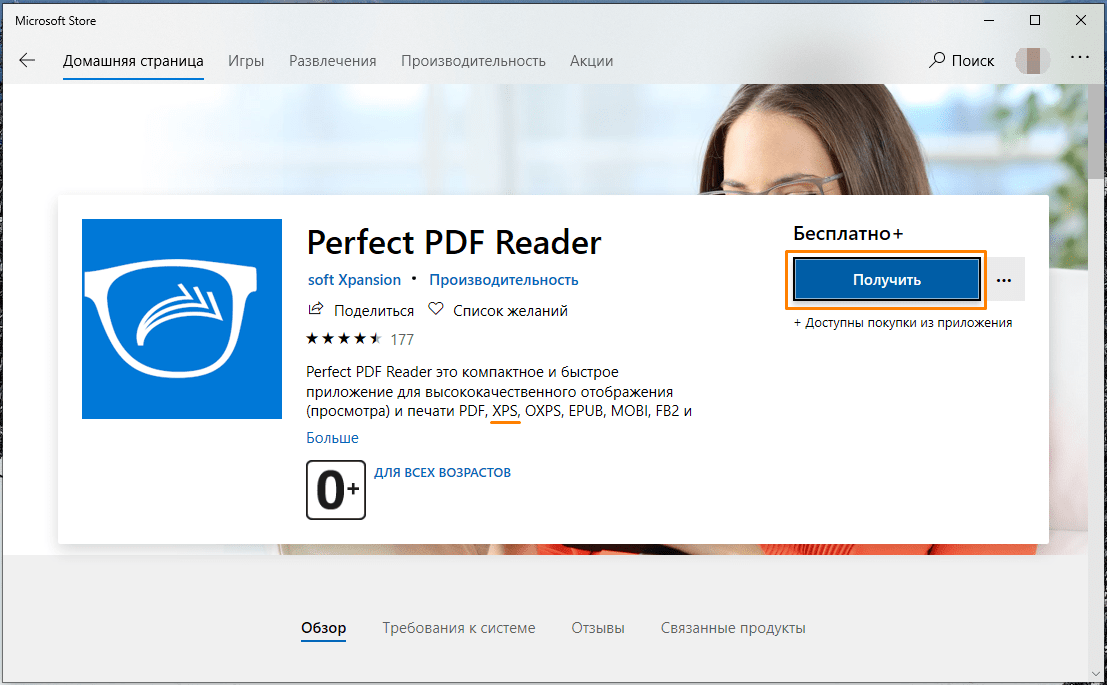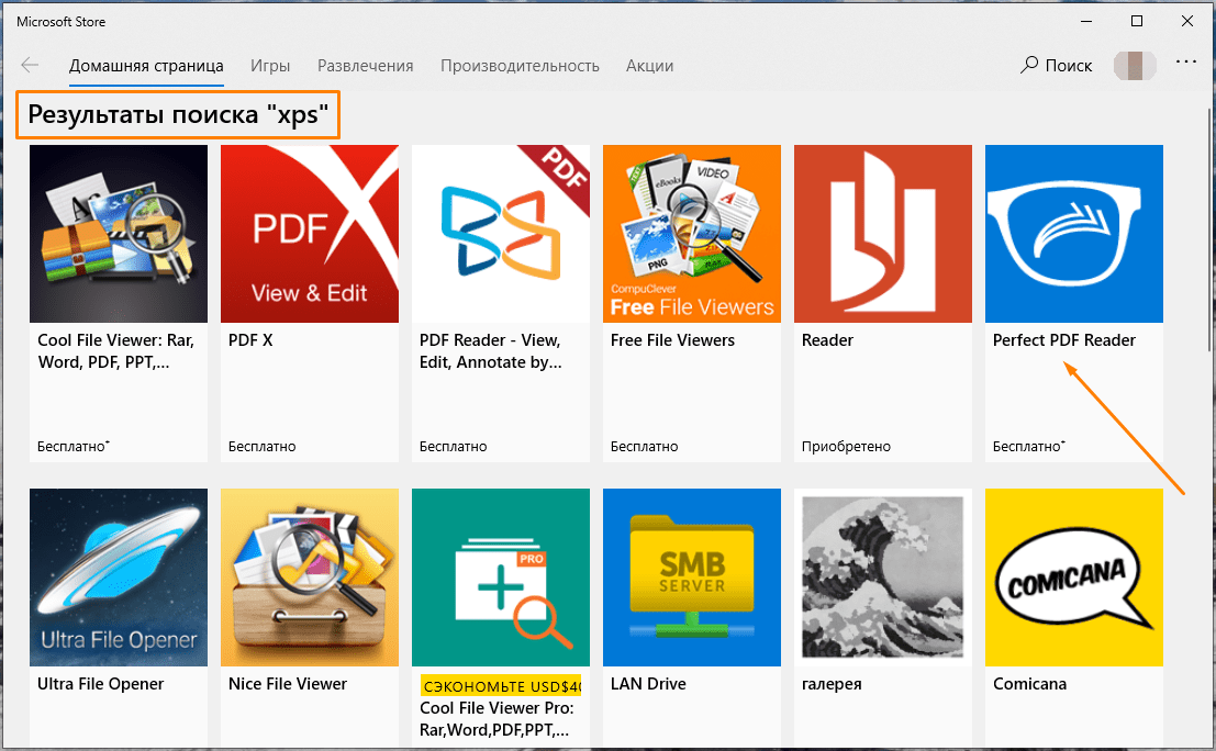 Многие приложения для работы с форматом PDF позволяют открывать и XPS-файлы. Большой выбор таких программ представлен в официальном магазине приложений Windows 10 «Microsoft Store».