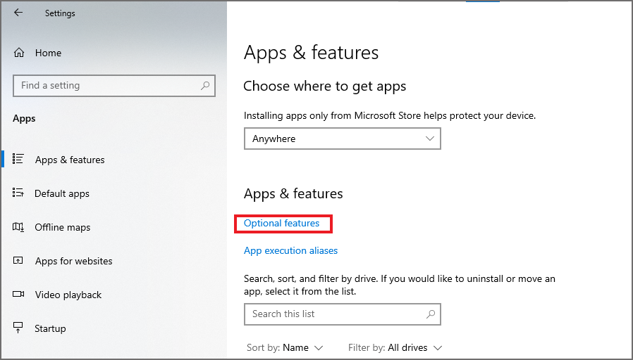 - Click “Optional features”.Note: If “XPS Viewer” is not already installed, it won’t appear in the “Installed Features” listing
