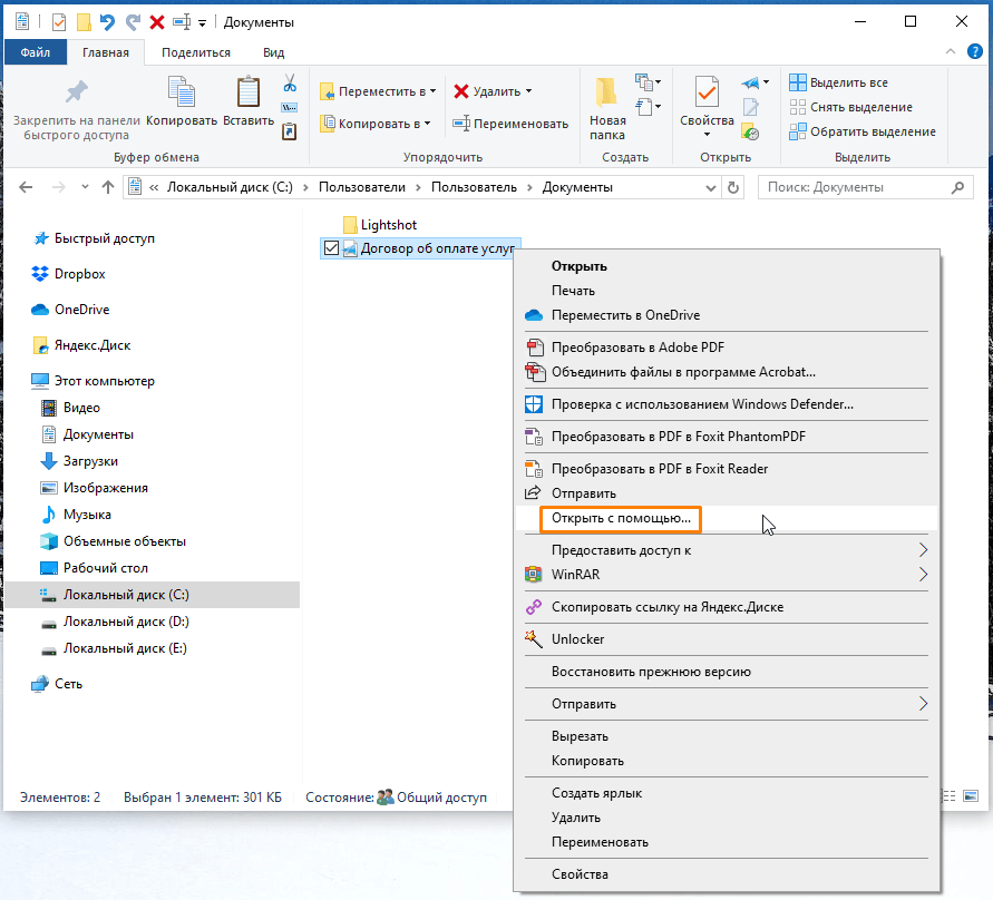 - Кликаем на файл XPS в «Проводнике» Windows правой кнопкой мыши и выбираем в его контекстном меню команду «Открыть с помощью».