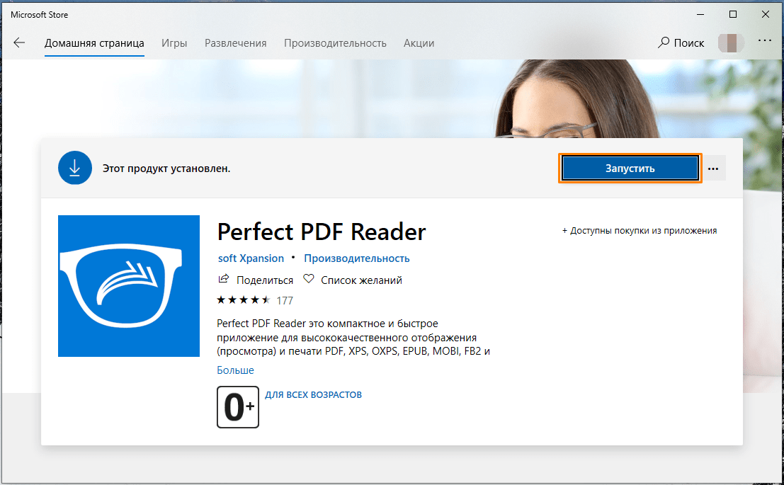 - Запустится магазин приложений с подборкой программ, поддерживающих формат XPS. Выбираем одну из них, например, «Perfect PDF Reader».
