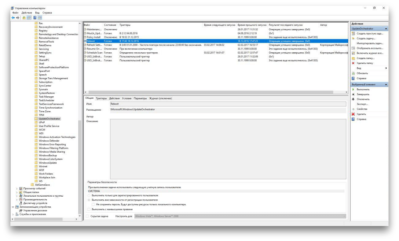 В планировщике заданий откройте библиотеку заданий, выберите папку Windows и найдите пункт UpdateOrchestrator.