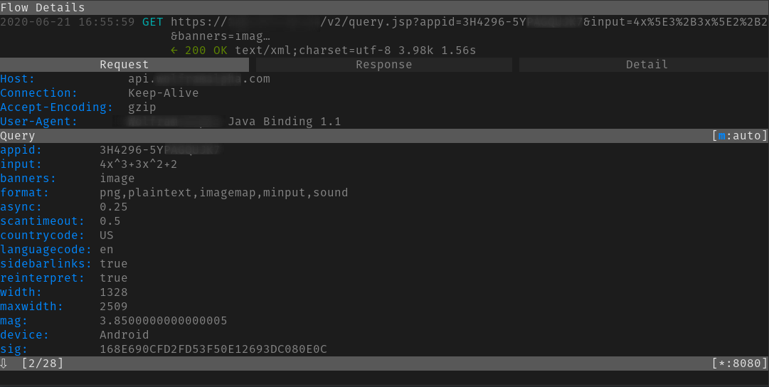 So far so good. No need for learning how to reverse-engineer the app. Surely I can figure out what those query parameters are? As it turns out it was extremely hard to figure out how the parameter was being generated. Everything else seemed generic enough but was dynamic and changed with a change in .