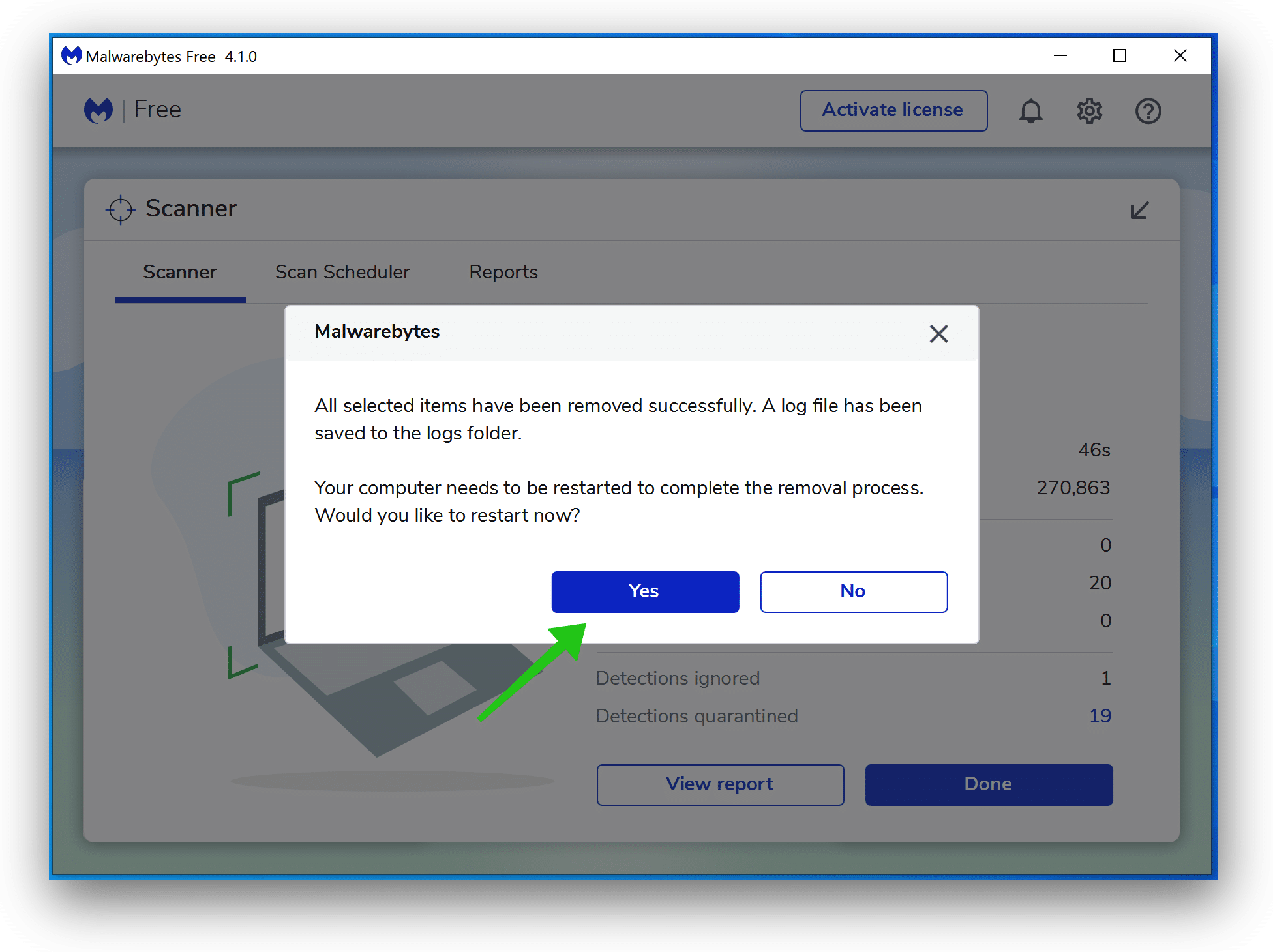 - Вредоносное ПО было частично удалено с вашего компьютера.