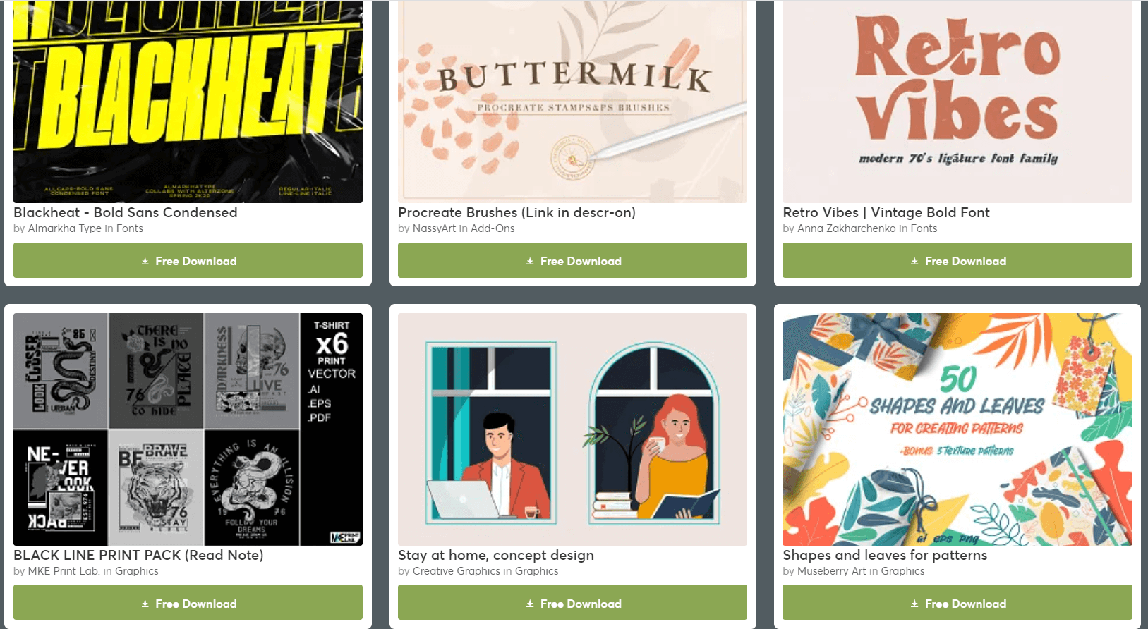 Free Section of Creative Market — площадка с бесплатными работами, которыми делятся дизайнеры. Пополнение набора каждый понедельник.