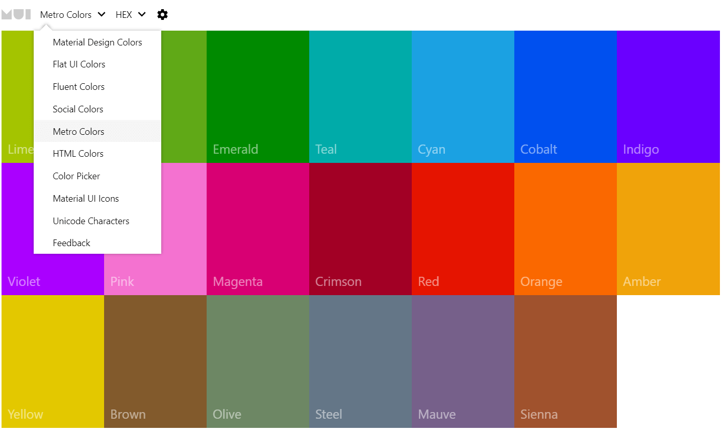 Material UI Colors — палитра для веба, Android и iOS в разных стилях.