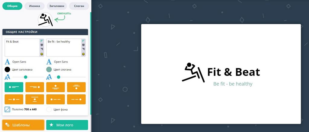 Это российский бесплатный конструктор логотипов. Он позволяет генерировать дизайн из готовых иконок и шрифтов. Сначала нужно ввести название компании и слоган. Затем генератор предложит вариант логотипа, который можно кастомизировать — сменить иконку, выбрать цвет шрифта, настроить тени и т.д. После этого логотип можно сохранить в высоком качестве.