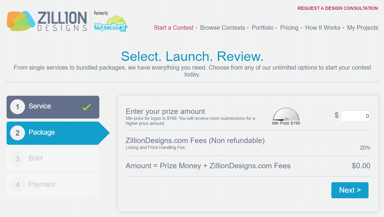 Прежде всего нужно выбрать сервис создания логотипа, так как Zillion Designs предоставляет более 20 возможных сервисов, включая сервисы по веб дизайну, разработке шаблона блога и т.д. Дальше вы вводите сумму, которую готовы заплатить за свой логотип (минимальная — $199) и коротко излагаете, какой логотип вы хотели бы получить. Затем, вы можете общаться с разными дизайнерами, которые согласились сделать лого для вас, а также вносить правки в процессе создания. Для того, чтобы получить лого есть 7 дней, после истечения которых, вы выбираете вариант, что подошел вам наиболее всего.