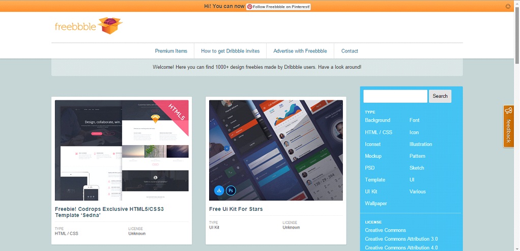 Freebbble — бесплатные элементы дизайна из Dribbble: иконки, мокапы, паттерны, кнопки, шрифты. У многих указана лицензия для бесплатного коммерческого использования.