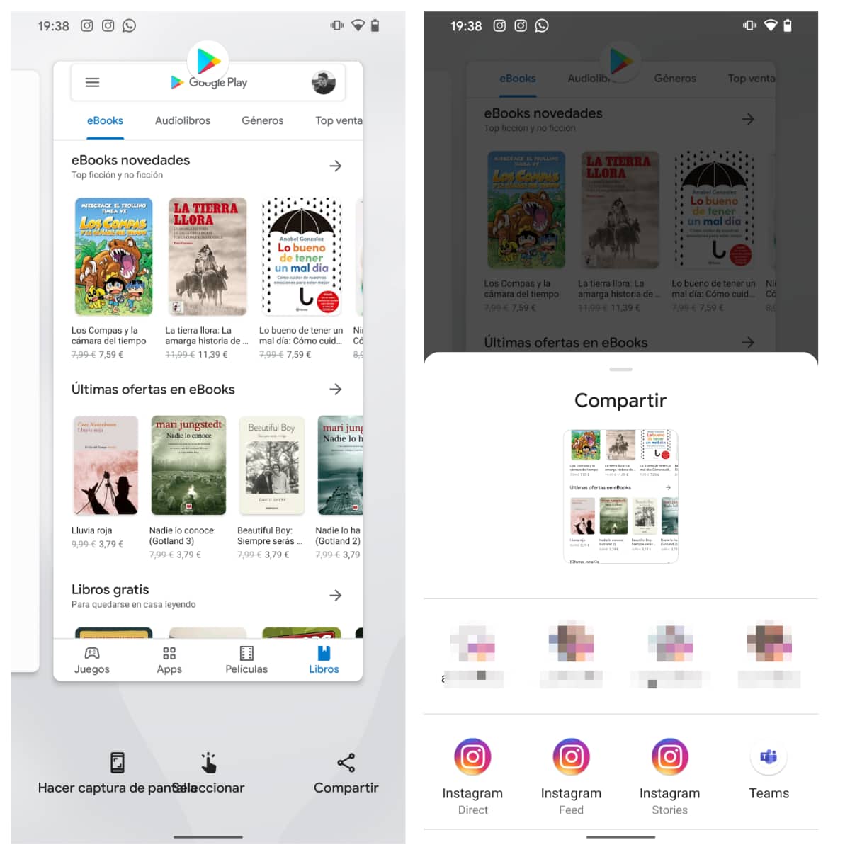 Мы также можем напрямую поделиться снимком. Войдите в меню недавних приложений, выберите приложение и нажмите кнопку «Поделиться». Затем выберите приложение, в которое хотите отправить снимок. Это гораздо более быстрый способ, поскольку доступ к приложению не требуется.